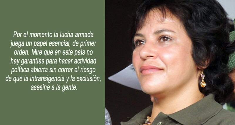 M: Por el momento la lucha armada juega un papel esencial, de primer orden. Mire que en este país no hay garantías para hacer actividad política abierta sin correr el riesgo de que la intransigencia y la exclusión, asesine a la gente. Los espacios de participación política llegan hasta el límite que le ha impuesto el régimen, y es el de la prevalencia de sus intereses y privilegios. De ahí en adelante se asumen los peligros y los fracasos de enfrentar la violencia política de una clase dominada por vicios como la corrupción, con unos partidos tradicionales que actúan como verdaderos gánsteres de la política y que en los manejos económicos, siempre están arrodillados a los mandatos de los Estados Unidos.